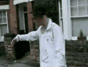 The man goes out of the house for a very basic need: milk. This further supports how the director wants life to be as average as possible. - Who doesn't go out to get milk? - The shots cut between tracking the man walking down the street. Very calm sounds and smooth camera angles. At this point, the man is presented as the movie's main protagonist. His shots are juxtaposed by the phone camera shots of the youths loitering outside a local newsagents. As the shots become shorter, and the sound begins to merge, it becomes clear that the two parties will meet. This then becomes true.